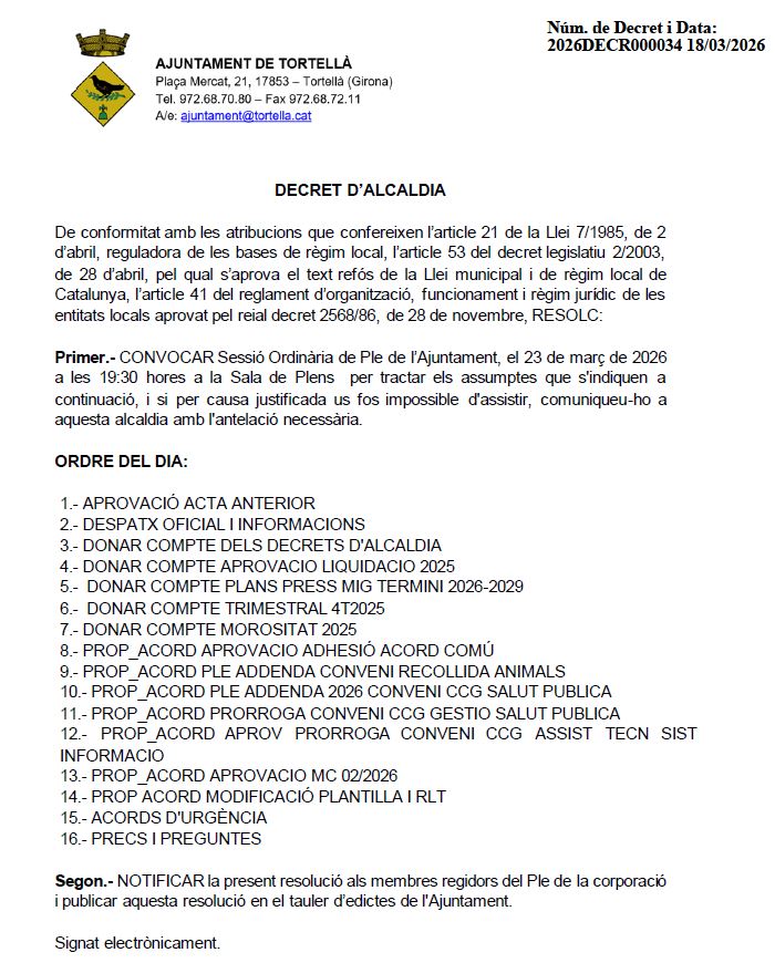 Actualitat, Agenda, General, Notícies Anunci Sessió Ordinària del Ple – 23 de març a les 19:30 h 23/03/2026 < Entrada Anterior